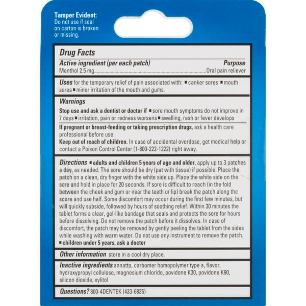 Bestviewsreviews ranking and score for dentek canker relief canker sore patch relieves canker pain. Thank you dentek canker soar patch we always have a box of these on hand just in case. Menthol 2.5mg in 194.85mg labeler: